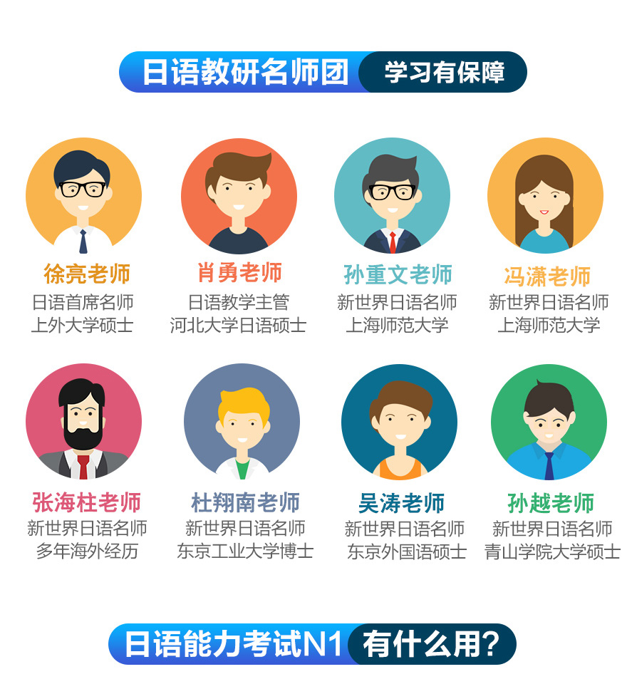 签约保过,不过重修,让学员半年直达日语N2;中外教联合授课,让学员感受权威专业日语培训。全日制课程,加强学习效果;0-N1不同等级的签约班,日语初级、中级、高级班,让不同日语基础的学员都可以选到合适自己的课程,通过日语能力等级考试。