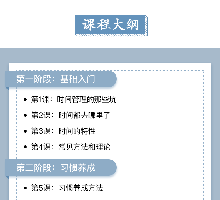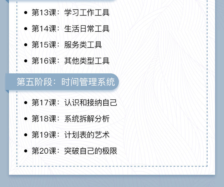 方法:好的时间管理,应该有一套正确的方法体系,而不是让你仅靠一腔热血和所谓的意志力才能做到。