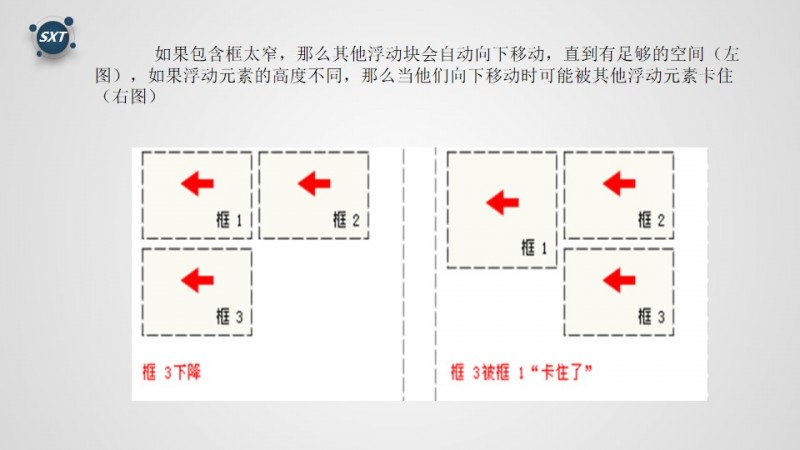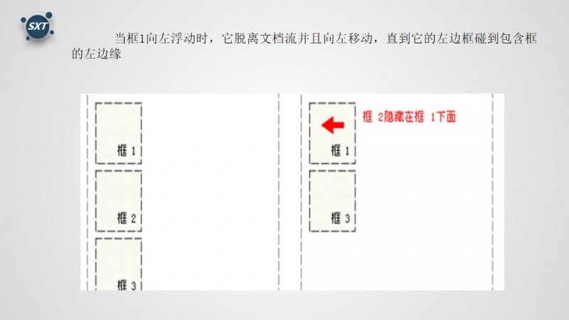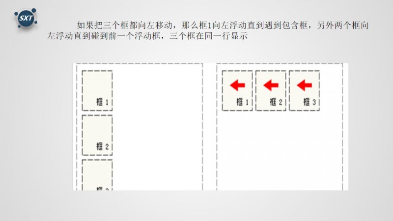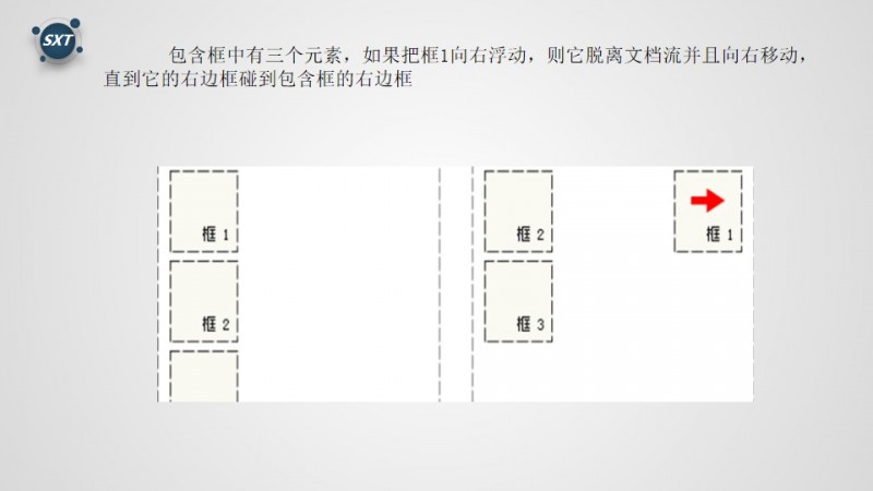 浮动的框可以向左或者向右移动,直到他的外边缘碰到包含框或另一个浮动框的边框为止