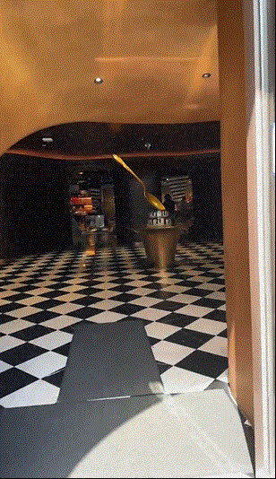 走进一楼大厅,小到棋盘图案的地板、大到整个场馆的氛围营造就能让人瞬间激起鸡皮疙瘩,这简直就是《查理和巧克力工厂》里的场景呀。